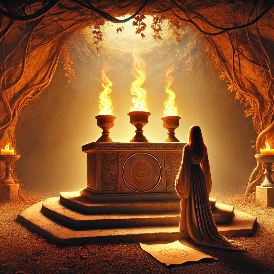 Nel lontano 1457, tra le vette imponenti delle Dolomiti italiane, esisteva un villaggio chiamato Valdeluce. In un'epoca segnata da violenti conflitti e instabilità, il popolo del villaggio viveva in perenne discordia, cercando pace e serenità. Si narra che, nascosto tra le montagne, vi fosse un altare magico, dove bruciavano tre fiamme sacre. Queste fiamme, secondo la leggenda, non erano comuni luci, ma incarnavano i tre pilastri su cui si fonda la felicità umana: Amore, Gratitudine e Pace Interiore.